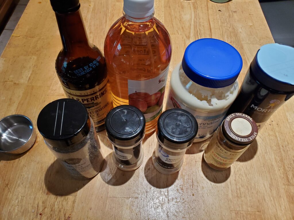 The sauce has been around since 1925 and was created by a guy called Big Bob Gibson in Decatur Alabama. He served it in his restaurant called Big Bob Gibson Bar-B-Q which is still in business today. One of the articles I read speculated he created it using mayonaise to baste whole chickens while cooking as a way to protect the meat from drying out. If you feel like trying out the original recipe I will post a link to where you can buy Big Bob’s White Sauce.