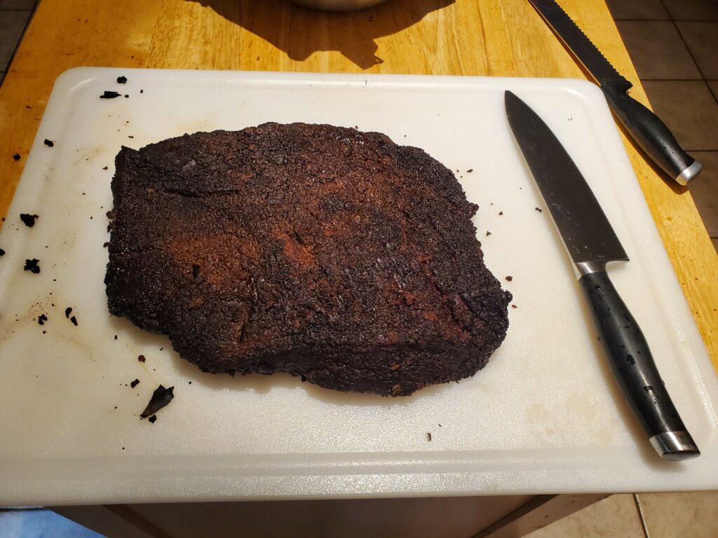 When you’re ready to cook, place the brisket fat side down (toward the heat source) with the point closest to the fire. This helps protect the leaner flat from drying out.